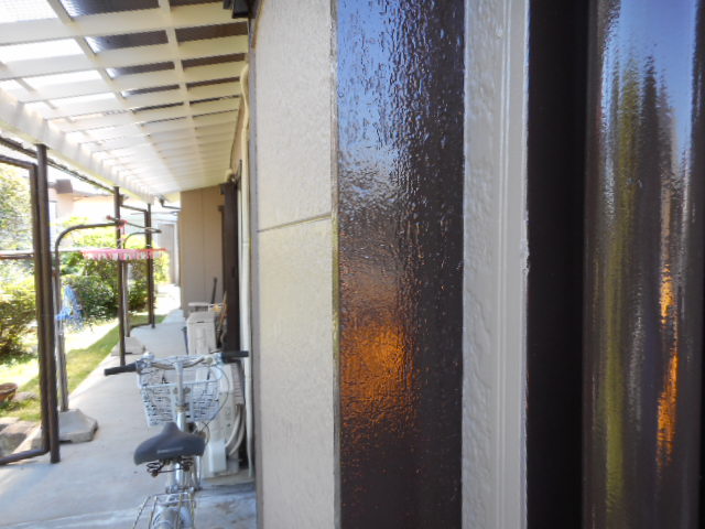 雨樋は陽射しに照らされて完全に変色していましたが、塗装後はピカピカになってしばらく安心です。