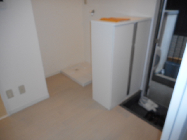 以前はなかったシューズボックスを新規に設置して、それをついたて代わりに後ろに洗濯機置き場を隠せるように配置しました