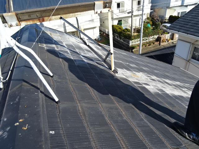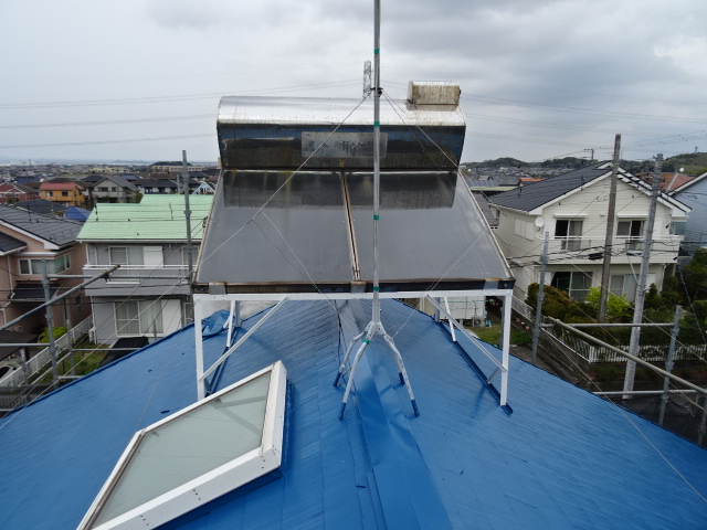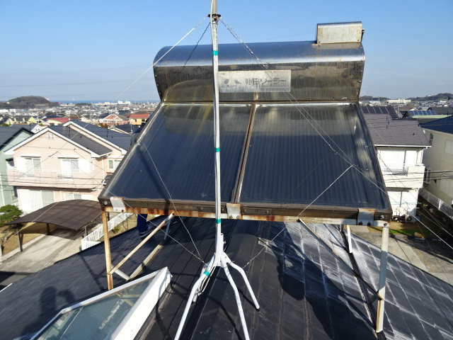屋根塗装・破風板・雨樋・太陽熱温水器架台塗装・トップライト回りコーキング補修