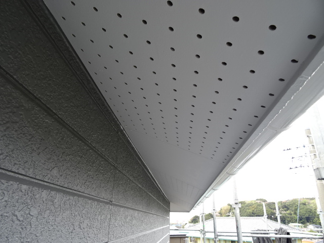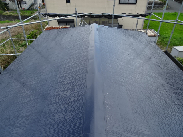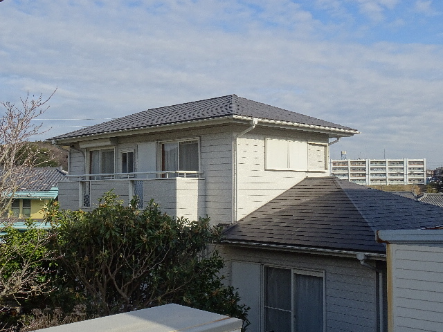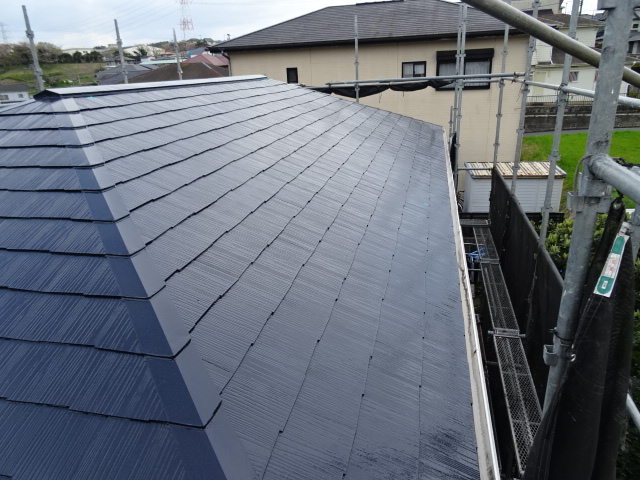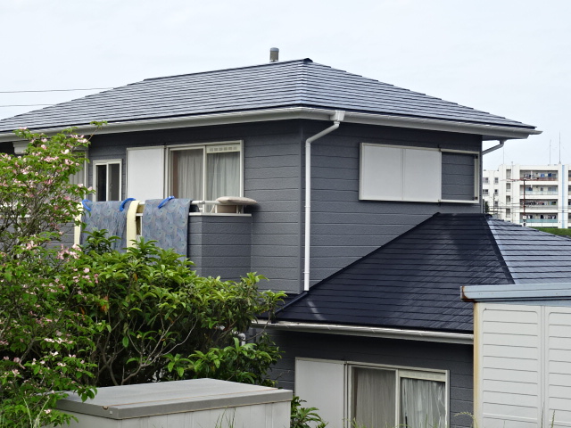 初めて施主様とお会いした際、前回の塗装工事から10年程経過、そろそろ塗り替え時期だと気付いていらっしゃいました。主に外壁の色褪せと汚れを気にされておいででした。足場架設後に屋根材にも年数相応の損傷等もありましたが、入念な下地調整の上、塗装保護を行ないました。今回の塗料は耐久性とコストのバランスの良い「ラジカル制御塗料」を使用させていただきました。紫外線による劣化現象を制御した人気急上昇中の塗料です。