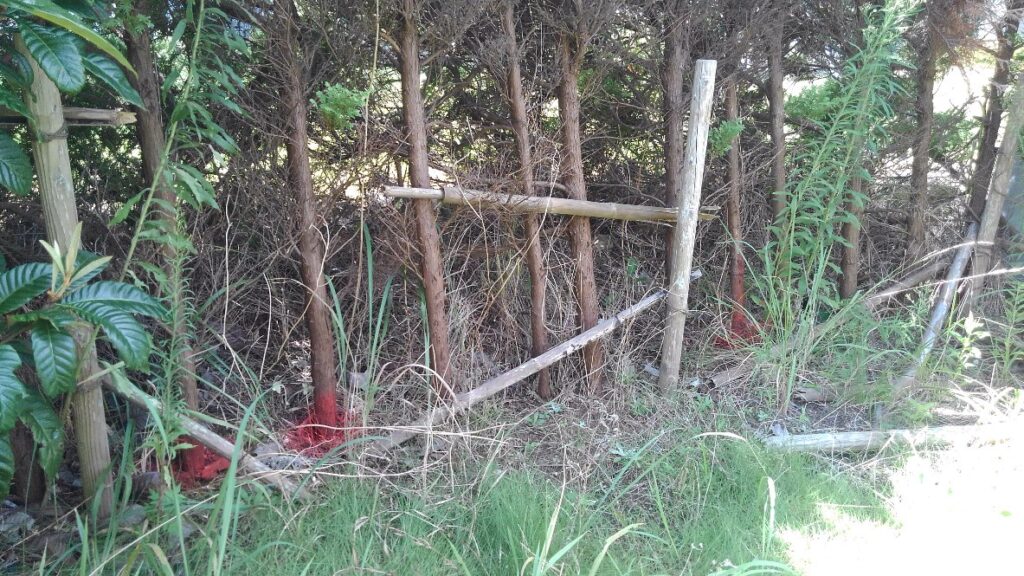初めて施主様からお話しいただいた際に、昨年台風時に植栽が傾いてしまい路上、境界両隣様に迷惑がかかるとお考えでした。思い切って植栽の伐採と境界部分をフェンスで囲うことをお望みでした。完成写真の通り、境界両隣様への倒木の危険性と、路上の見通し迄劇的に改善を致しました。施主様からも大変満足との声を頂く事が出来ました。こちらこそ本当に有難うございました。