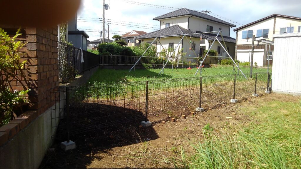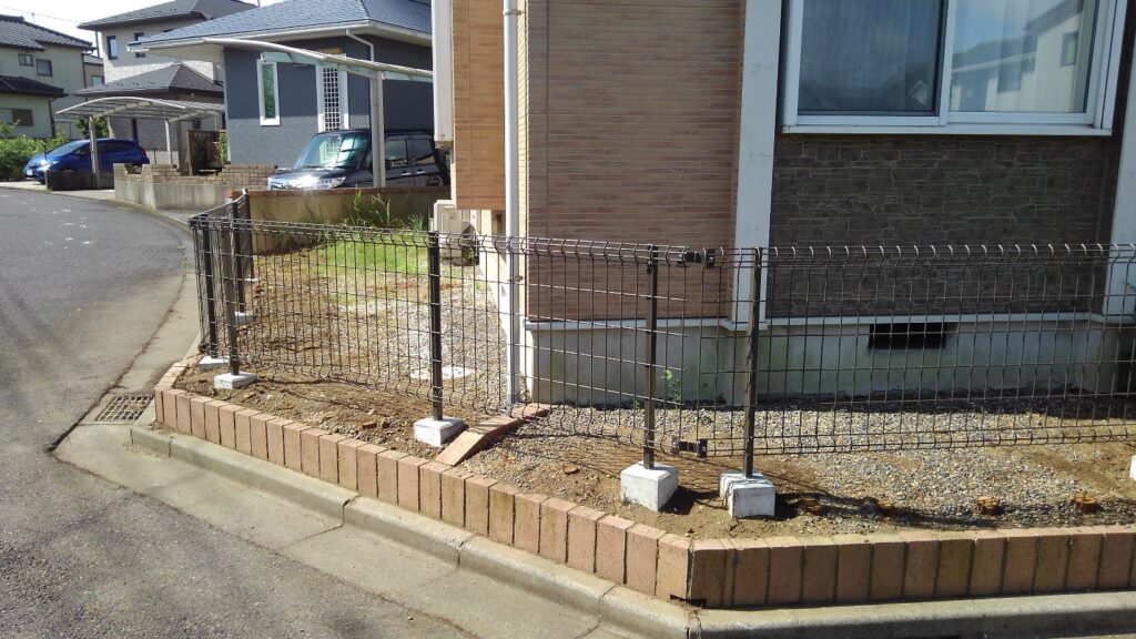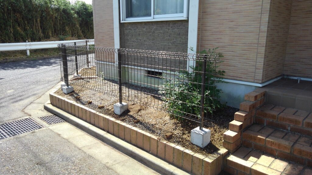 外構フェンス設置工事、植栽伐採工事